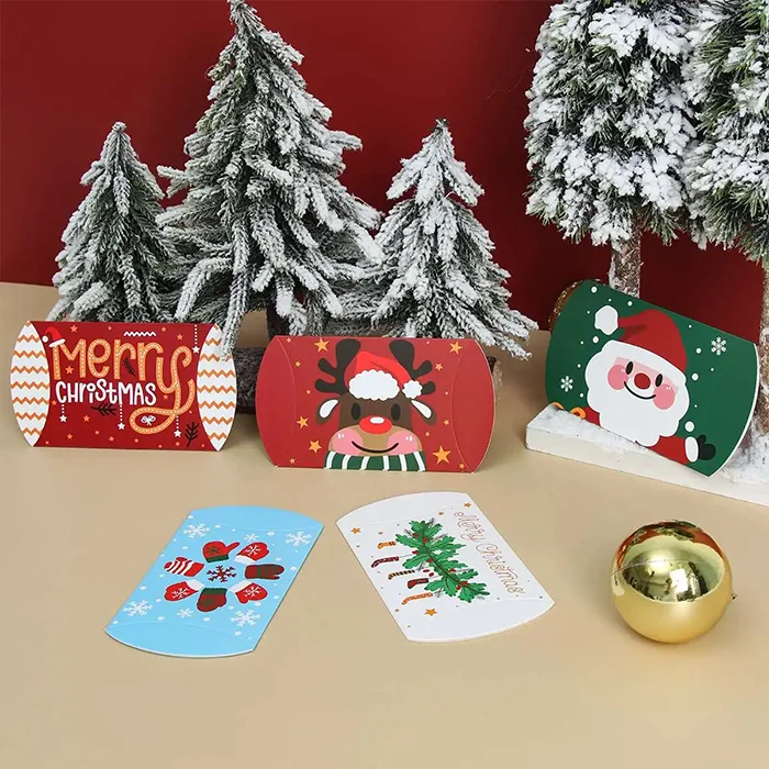 To add more festivity to your event, our creative and adorable Christmas pillow boxes are a top pick. They are a wonderful way to present your gifts on this special occasion. With attractive themes, fascinating colors, and captivating images, we let you design these boxes to create real fun. They are an optimal way to spread happiness and love around. You can use Christmas pillow boxes to pack anything like cookies, chocolate, candies, lollipops, holiday gifts, candles, or anything that comes to your mind. The use of quality materials will keep inner items safe to deliver them in the right condition.