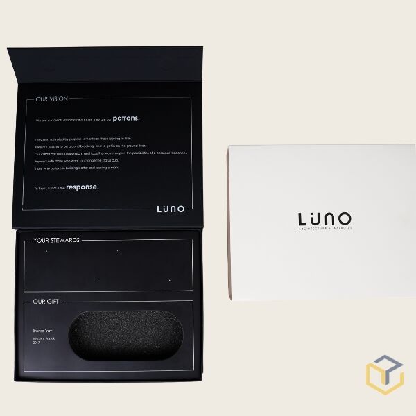 These are sturdy, premium boxes with a clean structure that holds their shape. The magnetic flap snaps closed effortlessly, keeping everything secure inside. Smooth, satisfying, and built to make whatever’s inside feel important.